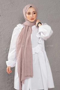 Lamelif Elegant Desen Müslin Şal Vizon Antrasit