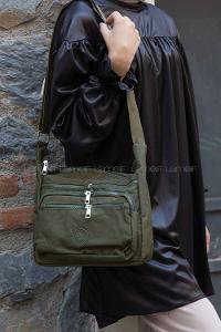 Lamelif Organic Kanvas Kumaş Çift Bölmeli Kadın Çanta Haki