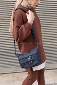 Lamelif Fermuarlı Kadın El ve Omuz Çantası Lacivert