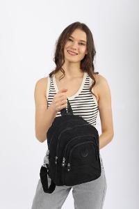 Modalamelif Krinkıl Kumaş Çok Bölmeli Sırt Çantası Siyah