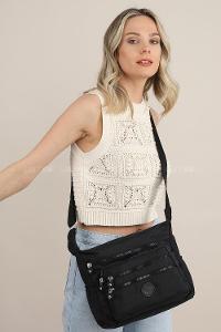 Lamelif Üç Bölmeli Buzzy Kumaş Kadın Omuz Çantası Siyah