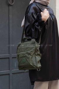 Lamelif Organic Kanvas Kumaş Çift Bölmeli Kadın Çanta Haki