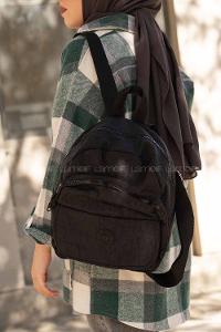 Modalamelif Krinkıl Kumaş Üç Bölmeli Sırt Çantası Siyah