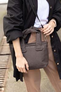 Lamelif Kadın Organik Kanvas Kumaş Çapraz Askılı Tote Omuz Çantası Acı Kahve