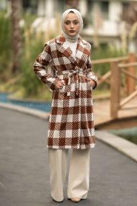 Lamelif Bağlamalı Kaşe Mont Kahverengi