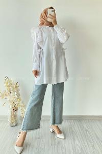 Lamelif Flores Fırfırlı Tunik Beyaz