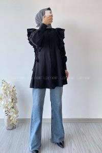 Lamelif Flores Fırfırlı Tunik Siyah