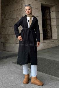 Lamelif Kuşak Bağlamalı Mont Siyah