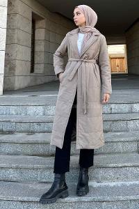 Lamelif Kuşak Bağlamalı Mont Toprak