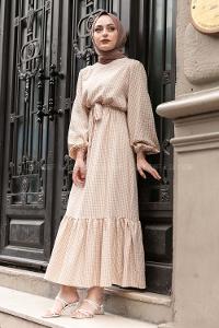 Lamelif Elica Tesettür Elbise Taş Rengi