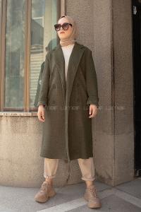 Modalamelif Kuşak Bağlamalı Uzun Kaban Haki