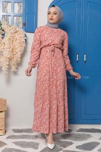 Lamelif Elica Tesettür Elbise Taş Rengi