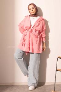 Modalamelif Kuşgözlü Bağcıklı Uzun Ceket Pembe