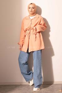 Lamelif Yaka Detaylı Parka Taba