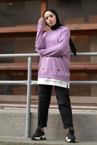 Modalamelif Kuşgözlü Etek Garnili Tunik Lila