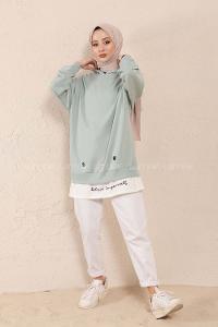 Modalamelif Kuşgözlü Etek Garnili Tunik Mint Yeşili