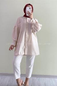 Modalamelif Kuşgözü Bağcıklı Çift Cepli Gömlek Taş Rengi