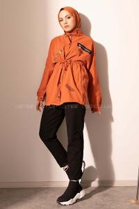 Modalamelif Kuşgözü Bağcıklı Gabardin Ceket Kiremit
