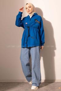 Modalamelif Kuşgözü Bağcıklı Gabardin Ceket Saks Mavisi