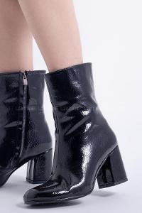 yandan fermuarlı, içi astarlı parlak rugan bot