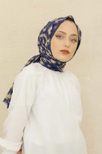 Modalamelif Lacivert Renk Bulut Baskılı Pamuk Vual Şal