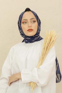 Lamelif Batik Çiçek Desen Bambu Şal Lacivert