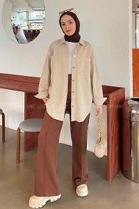 Lamelif Oversize Gömlek Acı Kahve