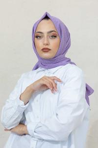 Lamelif Elegant Desen Müslin Şal Eflatun