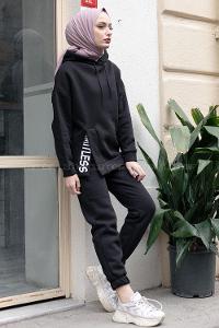 Lamelif Kapüşonlu İkili Takım Siyah