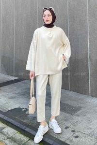 Lamelif Lively İkili Triko Tesettür Takım Ekru