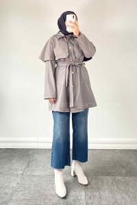 Lamelif Marnie Pelerin Detaylı Trençkot Gri