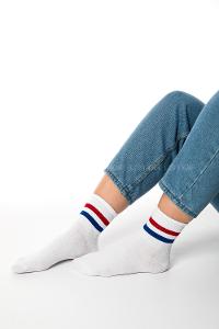 Modalamelif Mavi-Kırmızı Şeritli Beyaz Çorap