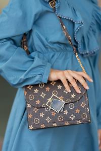 Modalamelif Metal Kilitli Monogram Çapraz Çanta Kahve