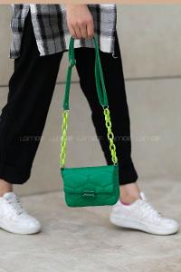 Lamelif Omuz Zincir Askılı Kapaklı Çanta Yeşil