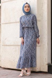 Lamelif Bel Tünel Detaylı Elbise Lacivert