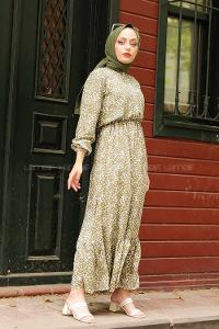 Modalamelif Minimal Papatya Elbise Yeşil