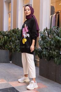 Lamelif İki iplikli Arma Detaylı Sweat Tunik Siyah