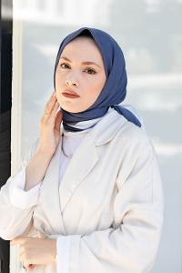 Lamelif Monoğram Eşarp İndigo-Ekru
