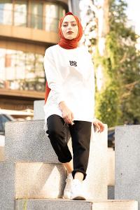 Lamelif İki iplikli Arma Detaylı Sweat Tunik Beyaz