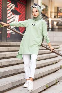 Modalamelif Mood Baskılı Uzun Sweatshirt Çağla Yeşili