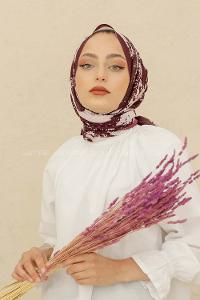 Lamelif Batik Çiçek Desen Bambu Şal Koyu Bordo