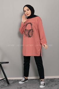 Lamelif Yırtmaç Detaylı Sweat Pembe