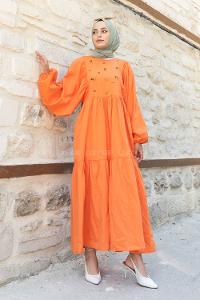 Modalamelif Nakış Detaylı Balon Elbise Oranj
