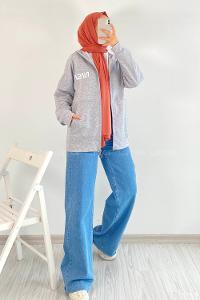 Lamelif Cep Detaylı Tesettür Hırka Gri