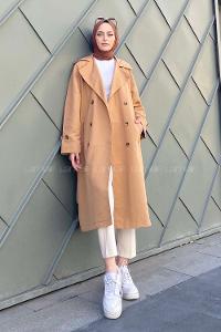 önü düğme kapamalı,astarlı kruvaze trençkot