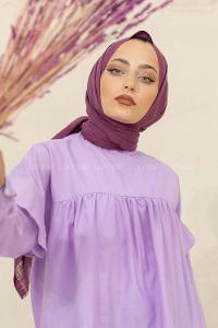 Lamelif Floral Desen Bambu Şal Mürdüm