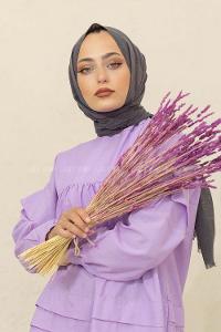 Lamelif Bohem Çiçek Desen Soft Şal Gri