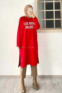 Modalamelif Never Self Coolıng Yazı Baskılı Uzun Tunik Kırmızı