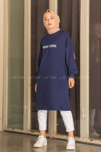 Lamelif İki iplikli Arma Detaylı Sweat Tunik Lacivert