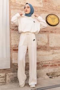 Modalamelif Nıke Nakışlı Kapüşonlu İkili Takım Ekru